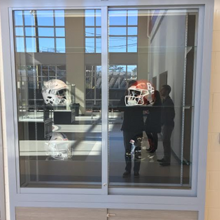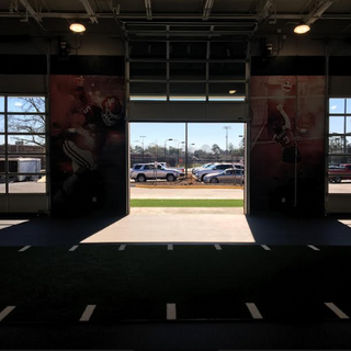 The facility is home to the state of the art basketball gym, weight and training room, BCHS Hall of Fame Classroom, coaches’ offices, conference rooms, and several beautiful cases to display trophies and memorabilia. It’s also worth mentioning that the locker rooms are wonderfully designed and much like ones you’d see at a small college, as each locker has a glossy wood finish and features a custom name plate for each player. The weight and training room features a 50 yard turf strip, is very roomy, and has multiple flat screen TV’s. It also has garage-like rollup doors that can be opened when it is nice outside. The Bearcat logo looks gorgeous on the several areas it’s painted and proves to be a nice touch to each area on which it is featured.