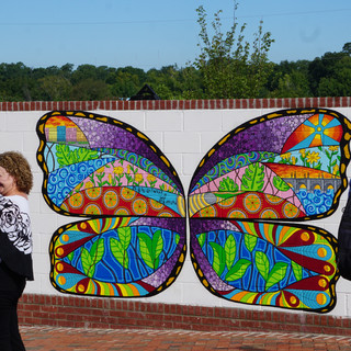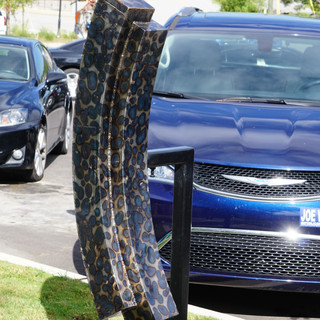 Currently, there are eight pieces of art in the park itself. The city’s Art Alley adjoins the park on one side. It is beautifully adorned with murals that are so colorful they’re sure to brighten your day. Each of the eight sculptures allow visitors to touch and feel their texture and shape. Some make sounds when they’re struck with the mallets or drumsticks that are attached. Each is painted with bright colors and have interesting shape and lines that flow at sometimes odd angles. Beside each is the artist name, the pieces name, and information about the piece.